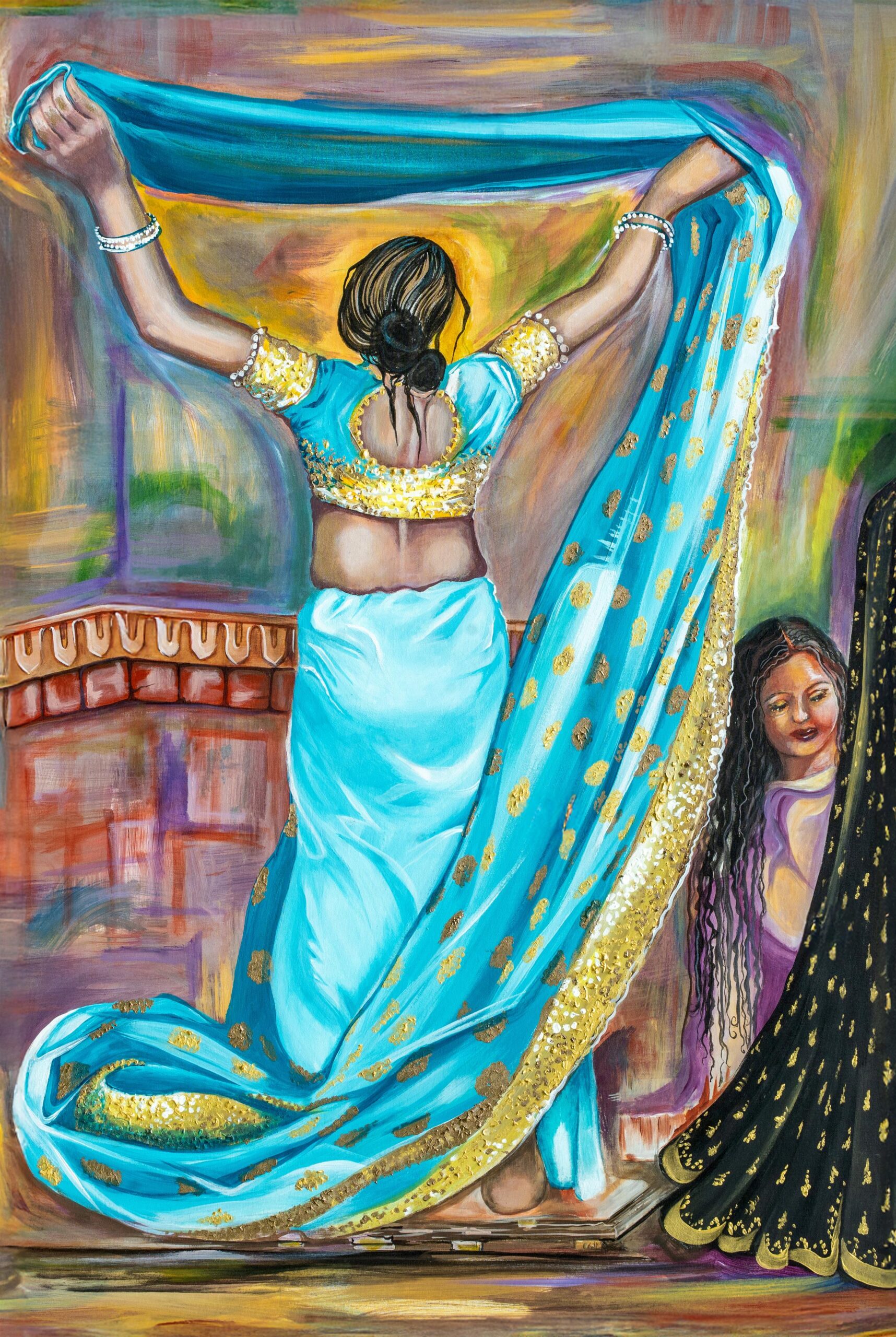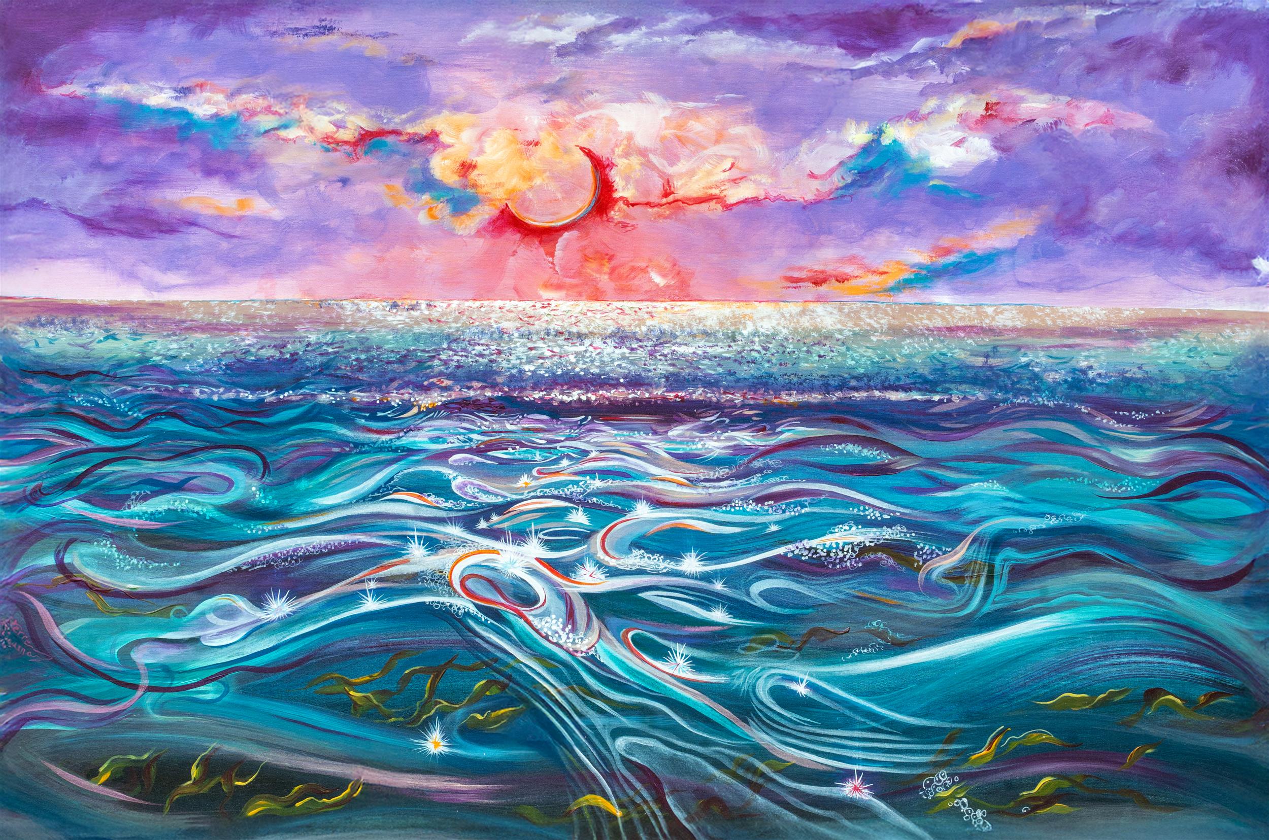 sparkling sunset. Painted on Italian canvas, Acrylic paint, Size 8” x 30”
